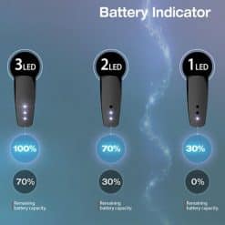 - Botón único de encendido con 3 luces led para indicar el estado del dispositivo y la batería restante.