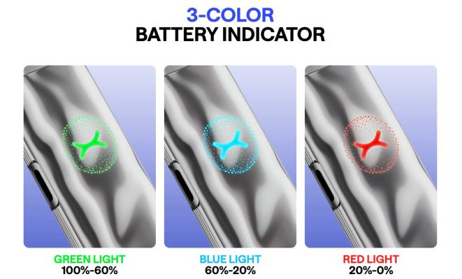 La iluminación de tres colores permite comprobar el estado de carga de forma rápida, manteniendo un diseño discreto sin necesidad de botones ni ajustes avanzados.