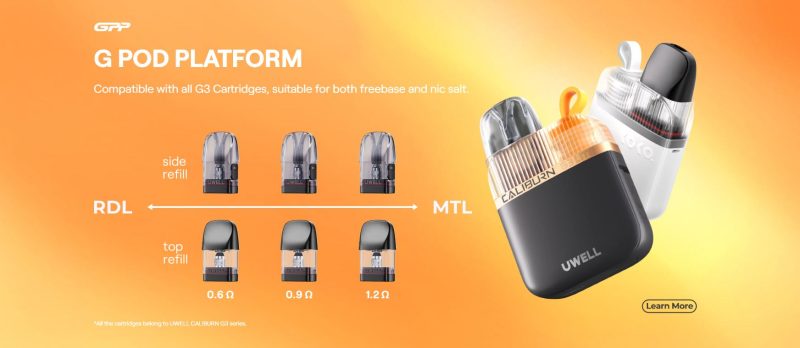 El Caliburn G3 Lite Koko es compatible con todos los cartuchos de la gama G3.