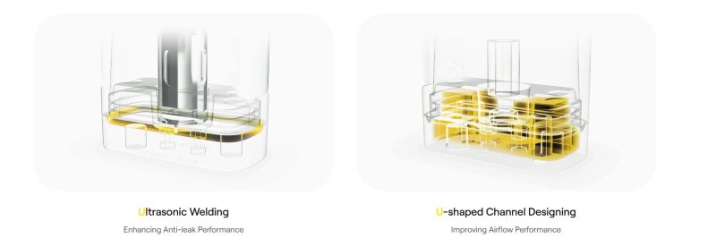 El diseño en forma de U mejora el flujo de aire, y mejora el rendimiento antifugas en un 150%, ofreciendo una experiencia única.