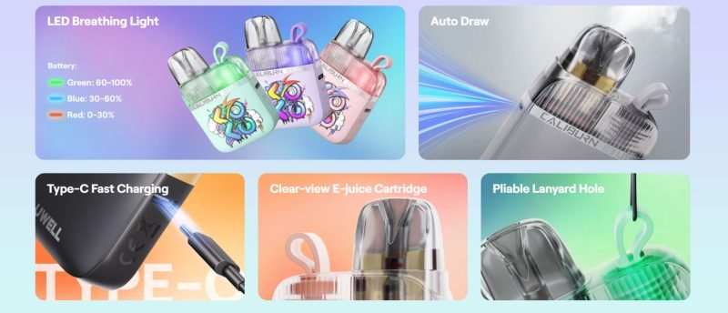 El dispositivo Caliburn G3 Lite Koko destaca por su sistema antifugas con forma de U, su gran capacidad para no perder intensidad de sabor conforme pasa el tiempo, y por su gran durabilidad.
