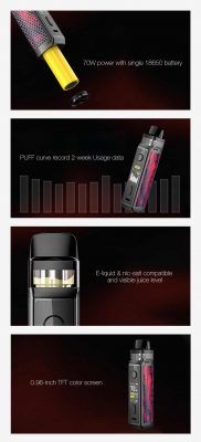 Después del éxito del Vinci, Voopoo va un paso mas allá y apuesta por una nueva versión llamada Voopoo Vinci X. En esta versión el Pod funciona con una batería extraible 18650 la cual le permite llegar hasta una potencia máxima de 70W, la nueva generación de GENE.AI chip permite la gestión mas eficiente hasta la fecha, incluyendo un sistema de seguridad que limita la potencia en función de la resistencia instalada y previniendo así que se quemen de forma prematura. Al igual que el Vinci este pod dispone de una pantalla TFT de gran calidad y incorpora un registro de memoria de dos semanas para que puedas monitorizar tus hábitos de vapeo.